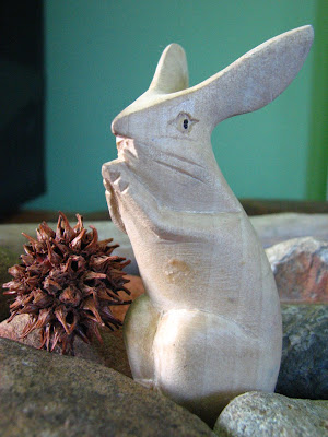 While at the Steiner Fair I bought some little wooden creatures for the kids. Of course, a turtle for Ari - who seems to know a lot about turtles, and innately really like them (or at least talk about them a lot). For Mishi I couldn't help but choose this friendly little Rabbit.